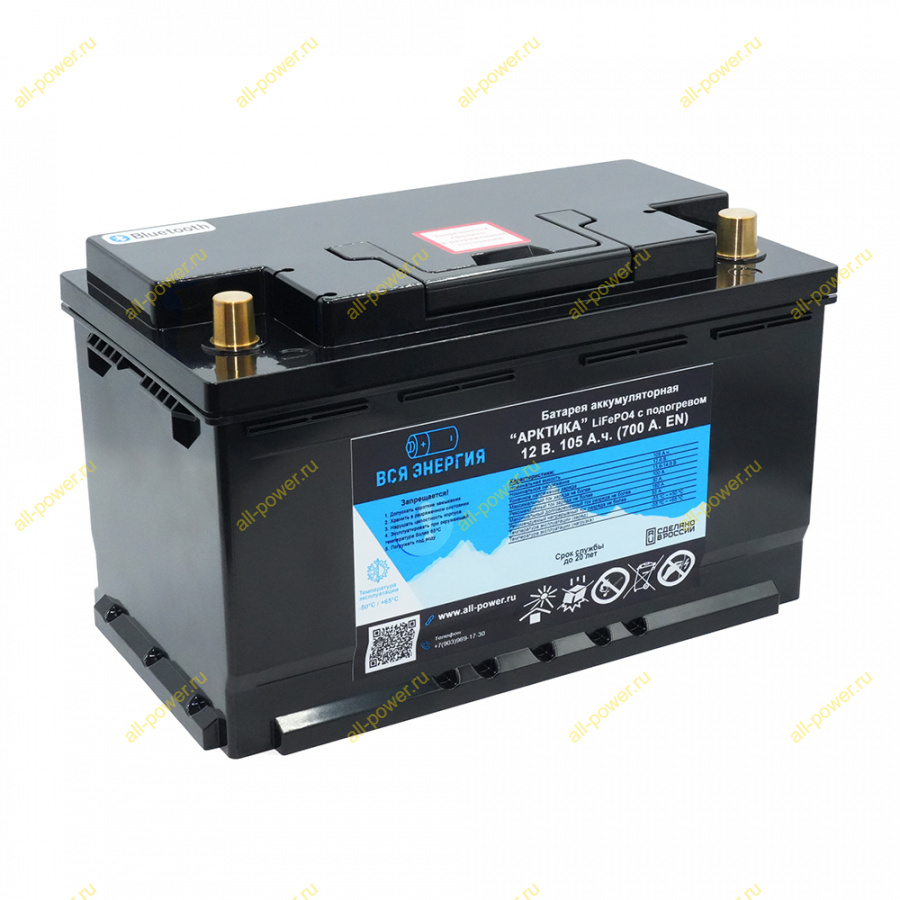 Аккумулятор поставляется в комплекте с утеплителем и термобоксом для гарантированной работы при сверхнизких минусовых температурах до - 50° C. Обязательно использовать и термобокс и утеплитель.
