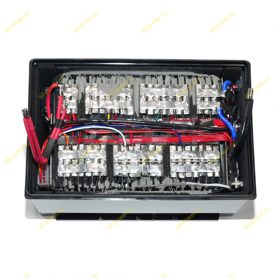 Данный аккумулятор полностью залит компаундом, включая электронику, что дает защиту от влаги, в том числе от морской воды, и от вибрации.