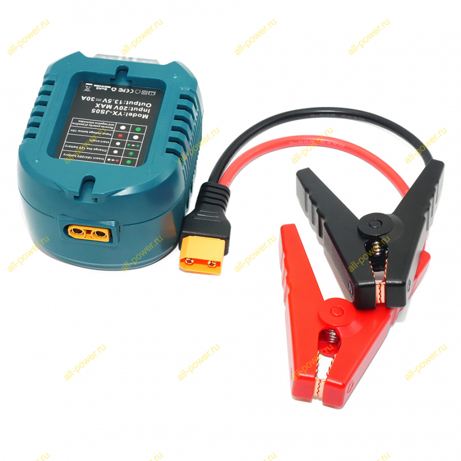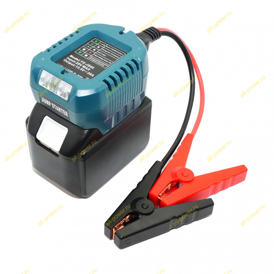 Данное пусковое устройство является мощным зарядным устройством для АКБ, при подключении к севшему аккумулятору автомобиля оно будет его заряжать током заряда до 30 Ампер (в зависимости от состояния заряжаемого аккумулятора). Нужно дать время, чтобы стартовый АКБ набрал немного энергии, которой хватило бы для старта автомобиля (как правило это от 3 до 10 минут).