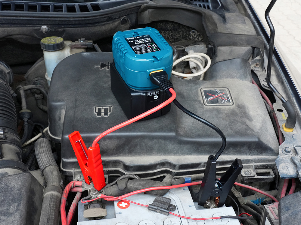 - Если у вас еще работают габариты, а стартер щелкает, но мощности не хватает для прокрутки двигателя – то данный прибор гарантированно позволит завести автомобиль.