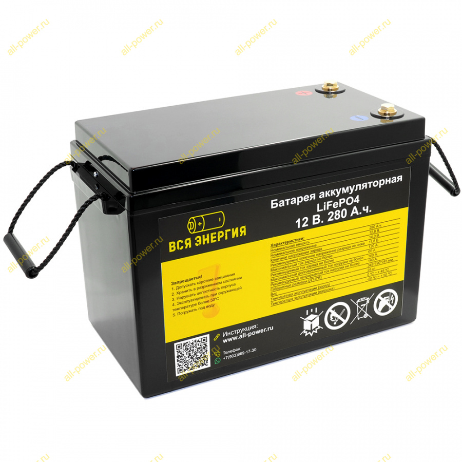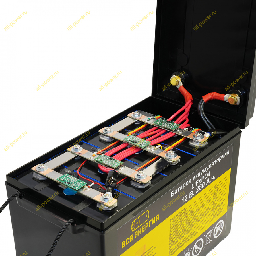 - встроенный термостат защиты от перегрева плат управления BMS (+75 ° C), от перегрева элементов в батарее (+55 ° C), защита от перегрузки по току - плавкий предохранитель 160 А.;