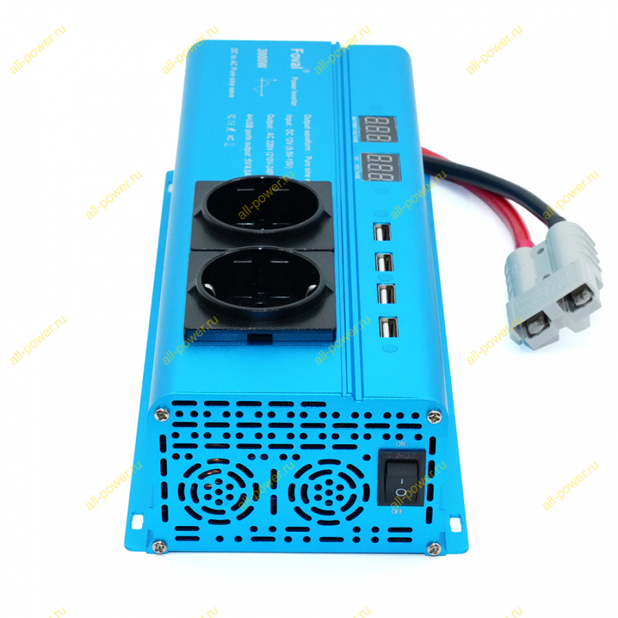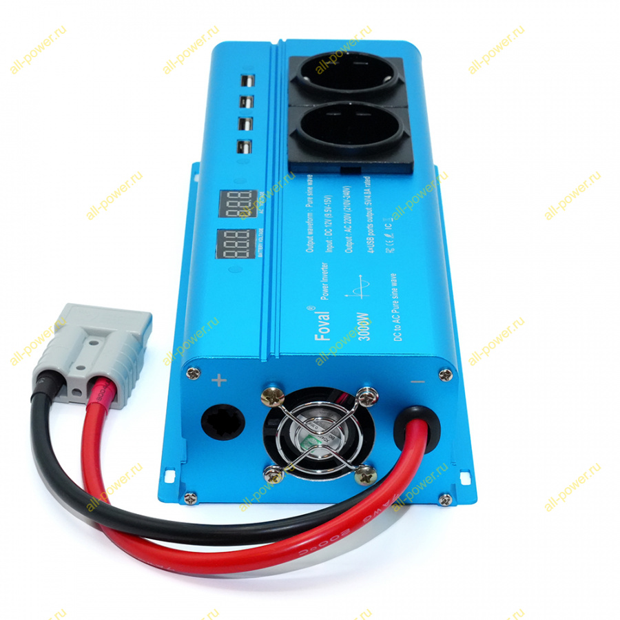 Инвертор Чистый синус номинальная мощность 1100 Вт, долговременная 1200 Вт, пиковая - 3000 Вт.