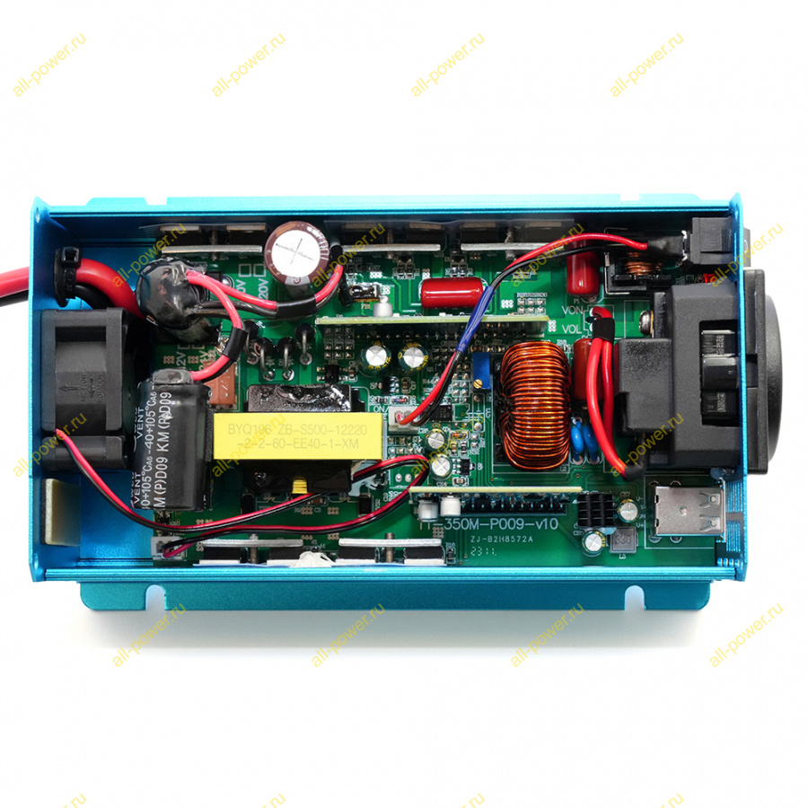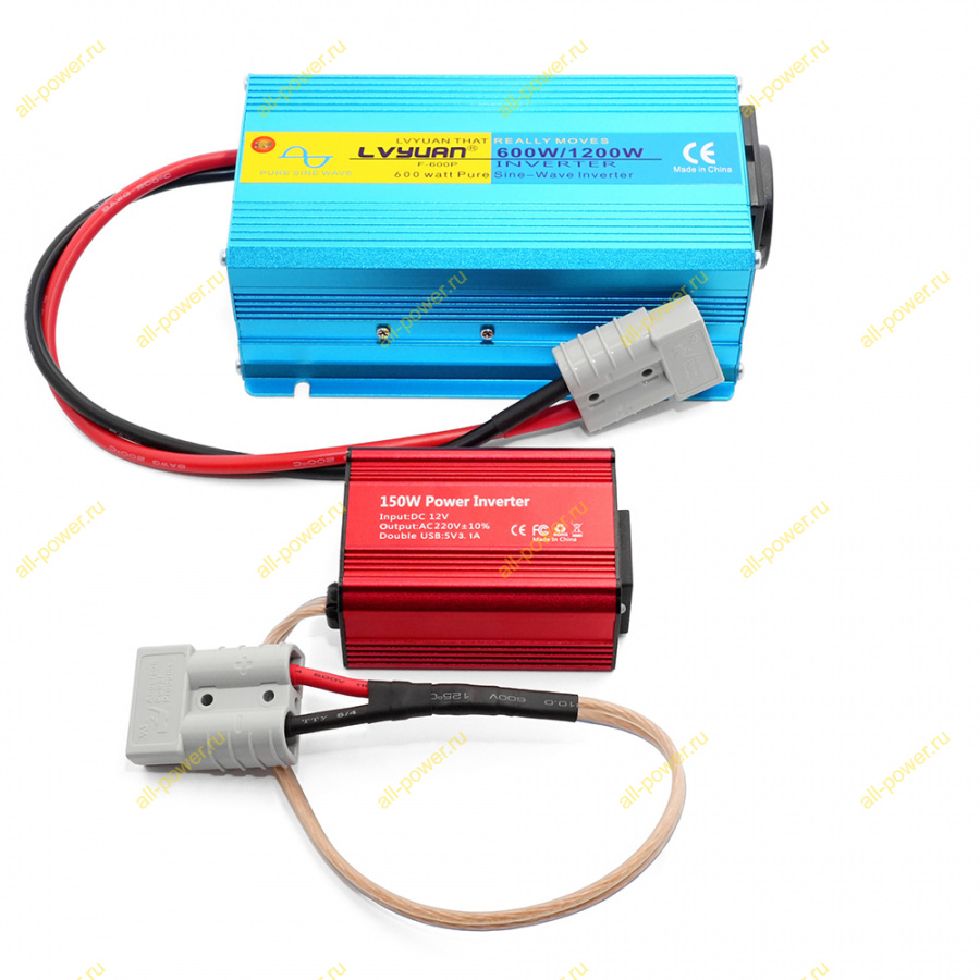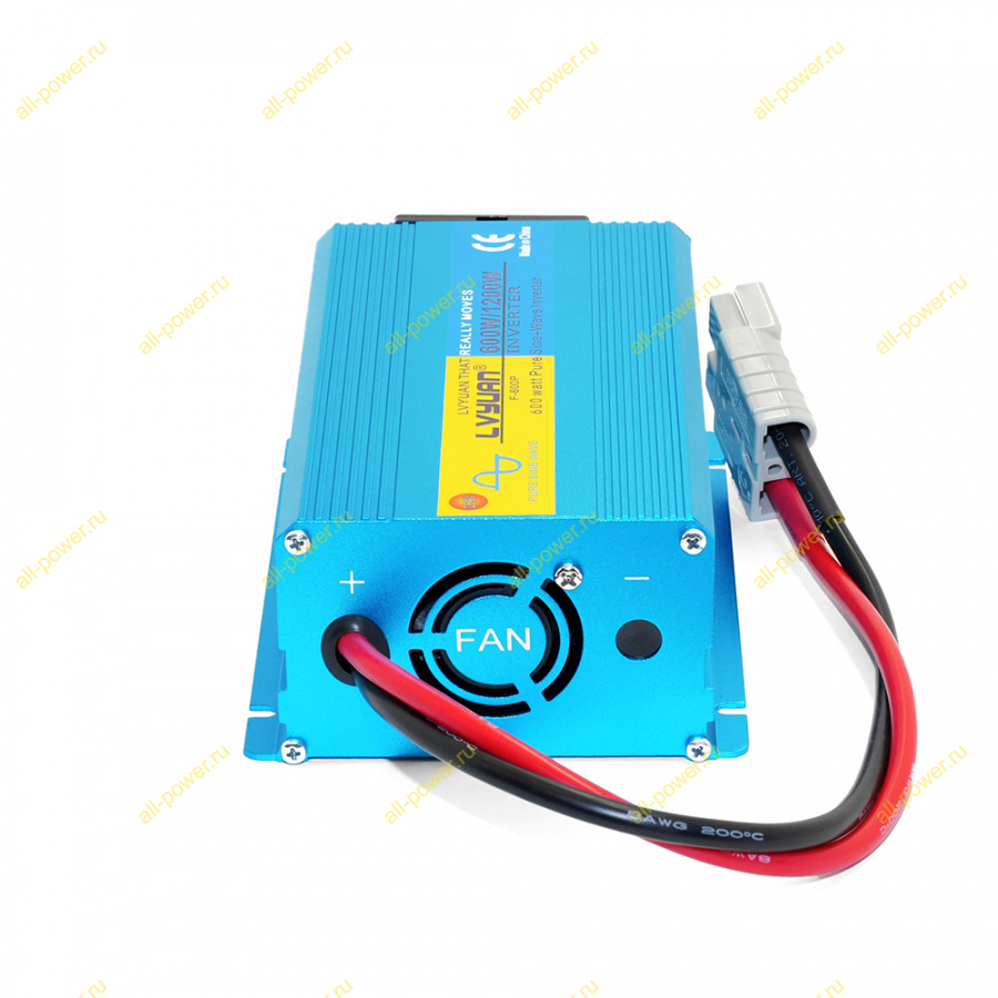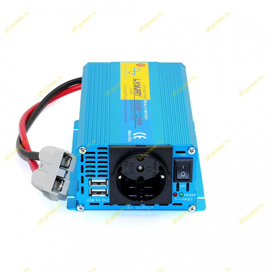 Инвертор Чистый синус номинальная мощность 400 Вт, долговременная 500 Вт, пиковая - 1200 Вт.