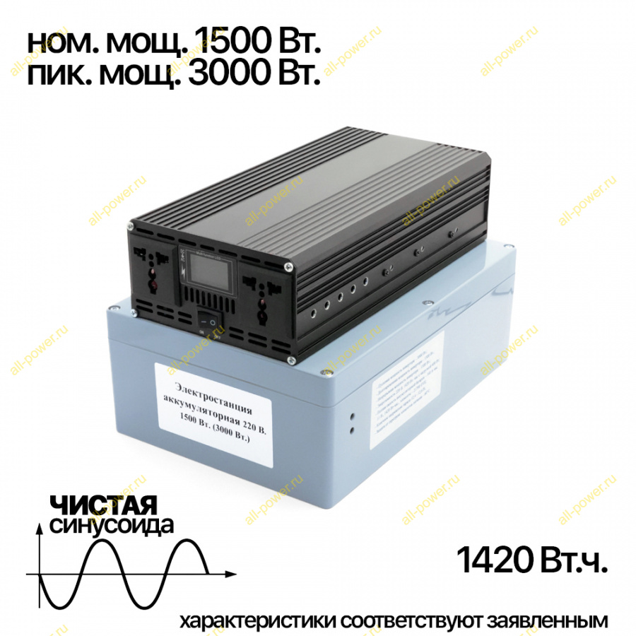 - высокая номинальная мощность - 1500 Вт., пиковая (пусковая) - 3000 Вт.;